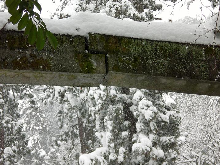 There're three torii gates at the Okatmot Otaki Shrine. One of them were found to be broken in the snow, maybe in this morning !! People started talking about that in the studios...