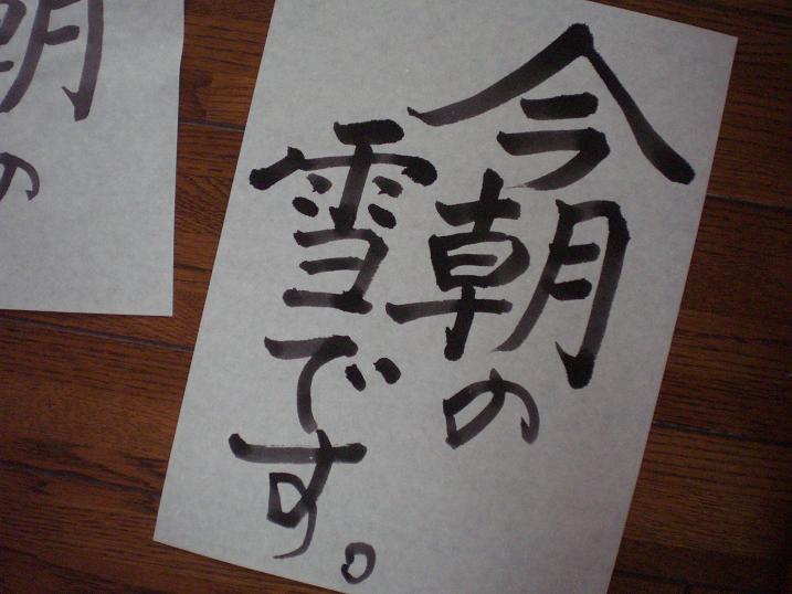 ( The kaji writing says ` snow in the morning `. I practive brush stroke almost early in the morning. I love that because it's really quiet and you can feel the dawn to welcome another new day. )