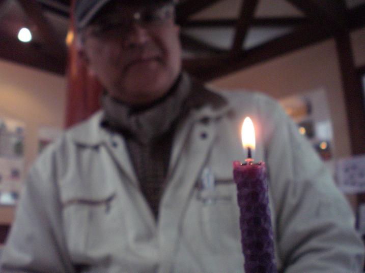( photo 1 : Mr. Tanaka watching the candle light )