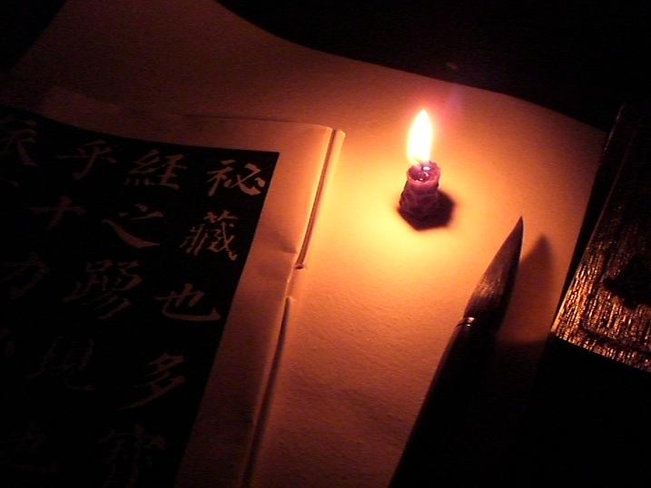 ( photo 2 : Using the candle on my desk where I practice calligraphy )