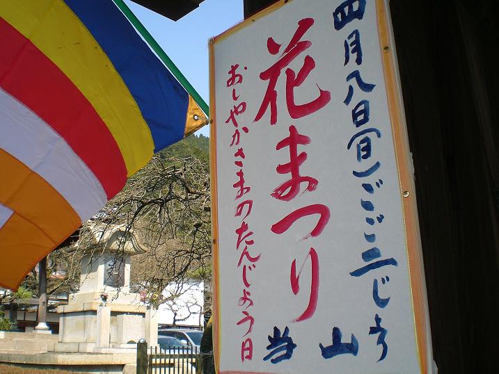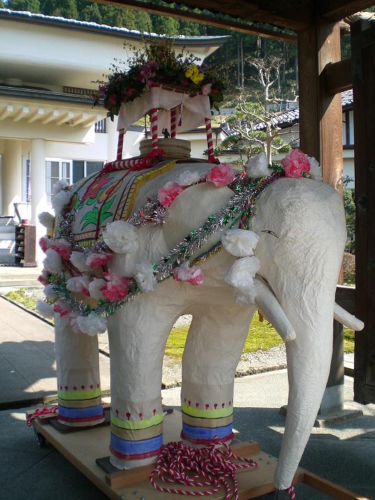 It is said to be on April 8th in the lunar calendar when Buddha was born. In the village at En-jyo-ji Temple there was a celebration for his birth. Kids and local people got together and sang Buddhism songs. I was listening to them outside and took a picture of the white elephant .... which I don't know what it is for..... but it's often seen in Buddhism stories.