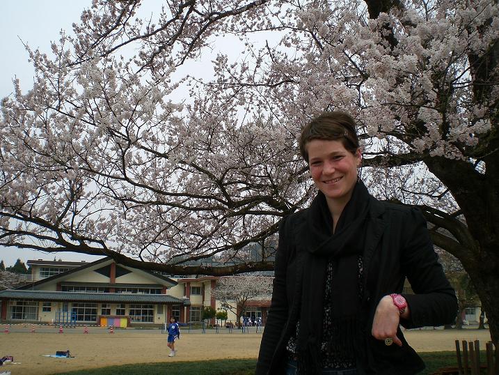 (photo 1 : Carole with sakura tree at Ajimano Elementary School )