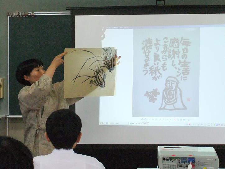 The other day I went to have a small speech in front of the students. It was about my occupation; papermaking, creating art works, translating in Chinese and English, teaching English and so on... I wear lots of hats which is unusual in Japan.