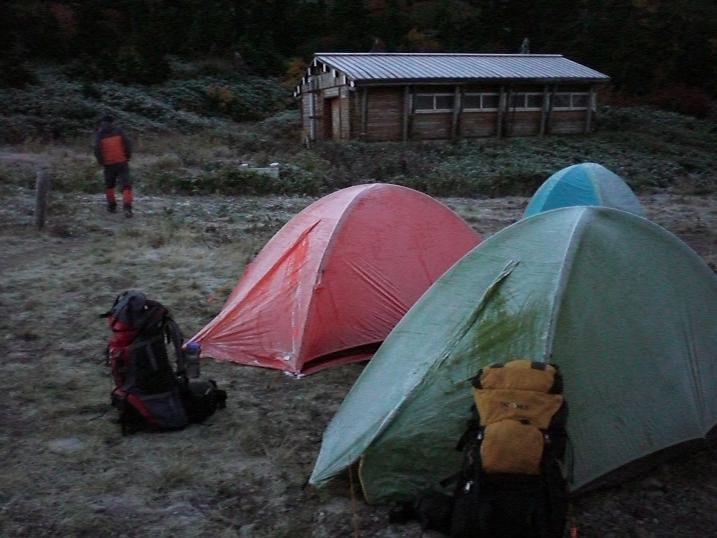 At night I didn't feel cold, thanks to my warm sleeping bag, though you can see my tent covered with frost in the morning.