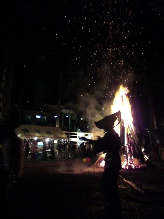 .... Anyways during the festival people dance in front of the big fire. Some people saw me taking pictures and said, ` Dance ! Rina ! `