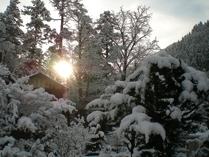 One from outside where you can see gate of the Okamoto Otaki Shrine taken this morning, the other from my window on a different day.