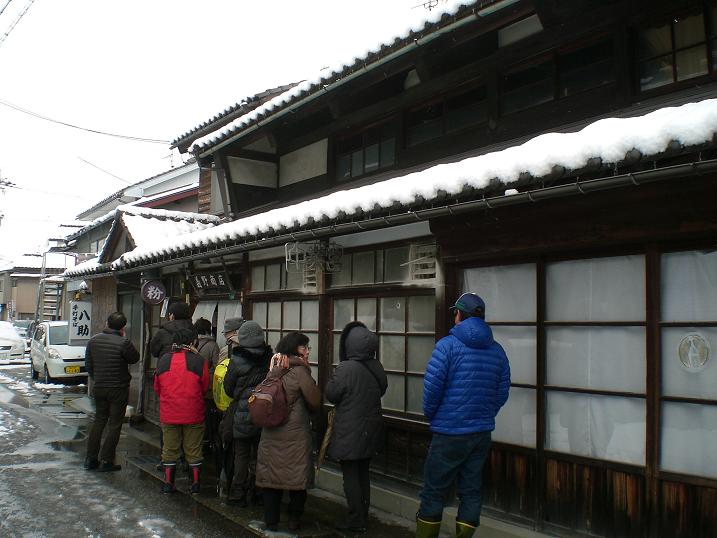 To buy sake cake, and to eat soba noodles..... I won't stand to wait in a cold place....