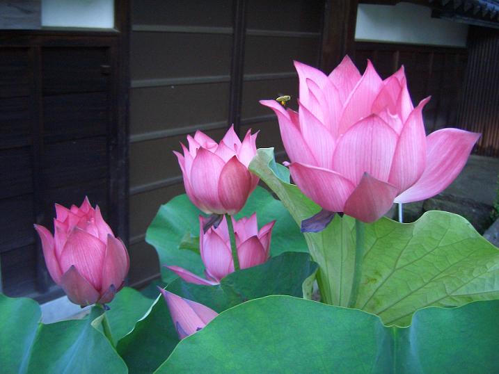 This season I have to stop by a temple called ` Jyo-gan-ji `. My previous co-worker who is in her seventies told me to check their lotus. They've just started blooming... and bees were collecting honey.