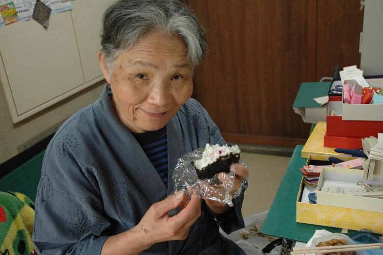 Yesterday at Udatsu Museum Aki-chan, who is a well-known comedian in the village, was having lunch.