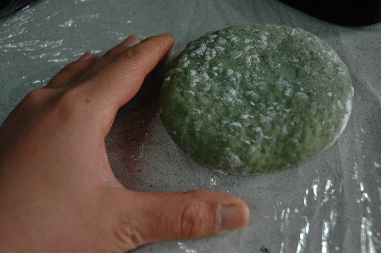 Mochi is usually made from glutinous rice, but this one is mixed with real rice. People tell me various reasons for mixing it with rice; Children can eat it very easily because it is not very sticky, or , they just like the taste.... and so on.