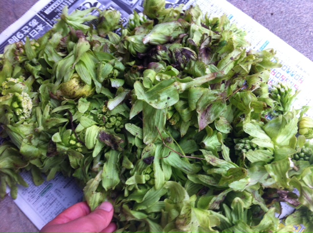 I tried two valleys to check this spring vegetables. I love the smell and so does Fusae-san age 86. To bring her spring from the mountain is my every year task !