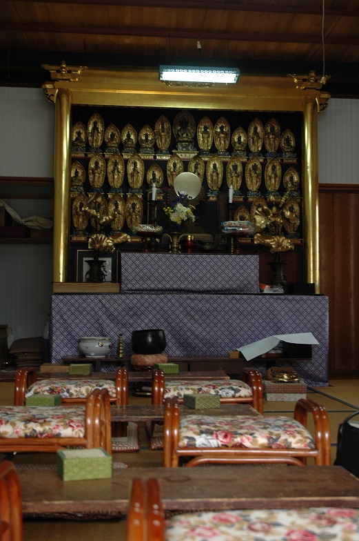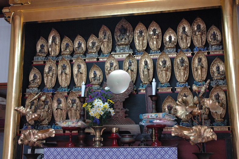 There is a mirror in the front. A monk just told me that the mirror is for Shintoism, so that it is the typical unification of Buddhism and Shinto.