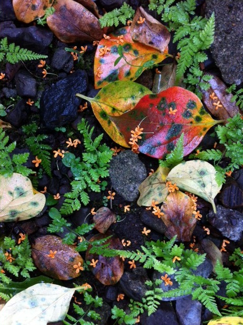 Outside my house you can smell ` fragrant orange-colored olives ` , or kinmokusei in Japanese, guihua in Chinese. I can see the petals on my small path.