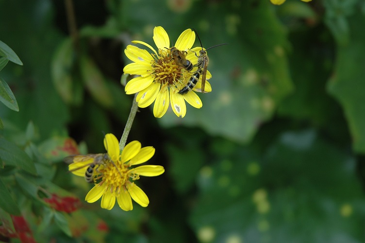 And I found little bees at my neighbor's garden. They looked rush to get their sweets.