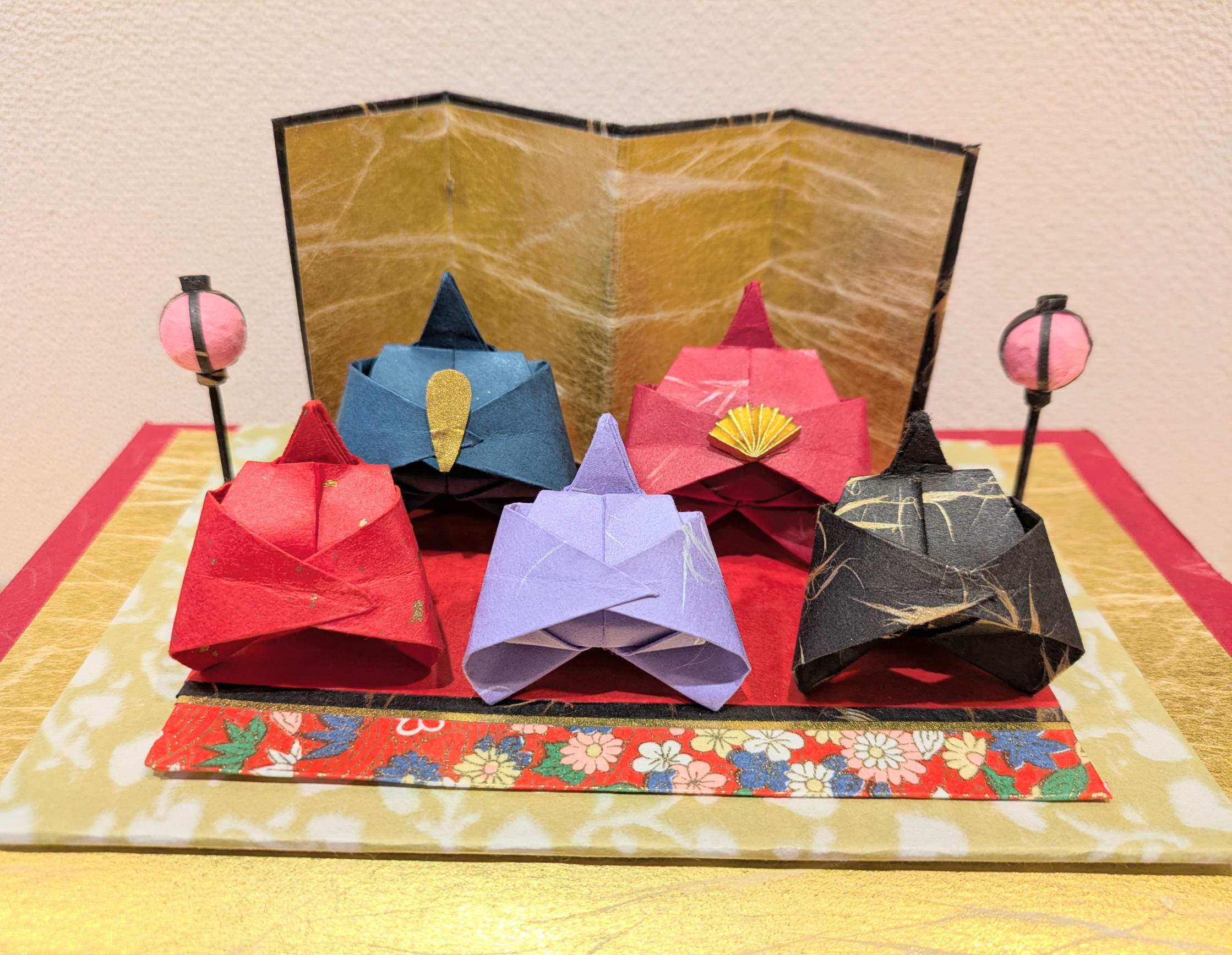 お好みの和紙を選んで、自分で折って、オリジナルのおひなさま飾りを作るワークショップです。