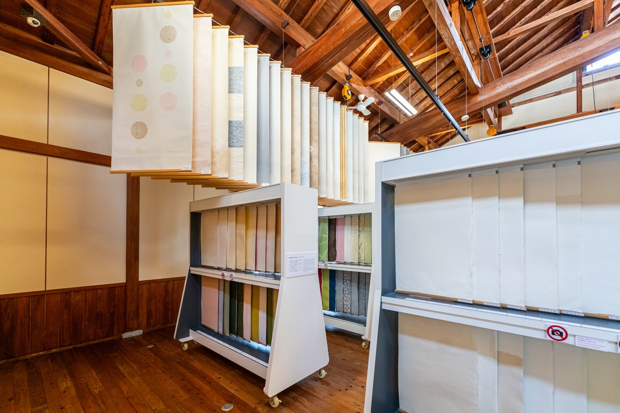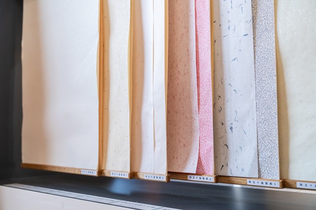 常設展では越前和紙の発祥や歴史について学ぶことができ、産地を代表する越前和紙を多数展示しております。