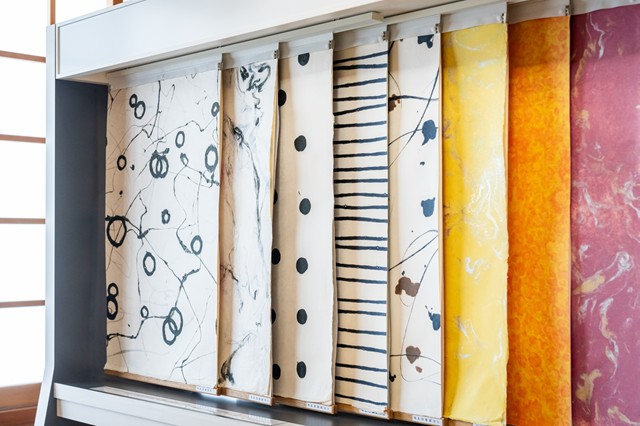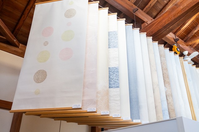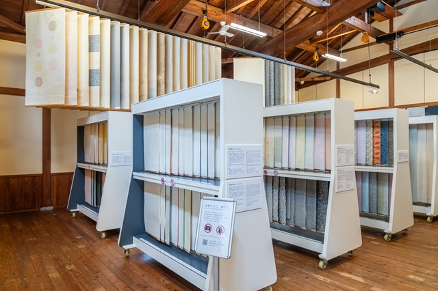 産地を代表する越前和紙を多数展示しています。手漉きの和紙から機械漉きの和紙まで幅広くご鑑賞いただけます。その他、創作的なふすま紙やタペストリーの展示も行っております。越前和紙の技術の高さや多種多様な和紙をご覧いただき、お気に入りの和紙を見つけてください。
